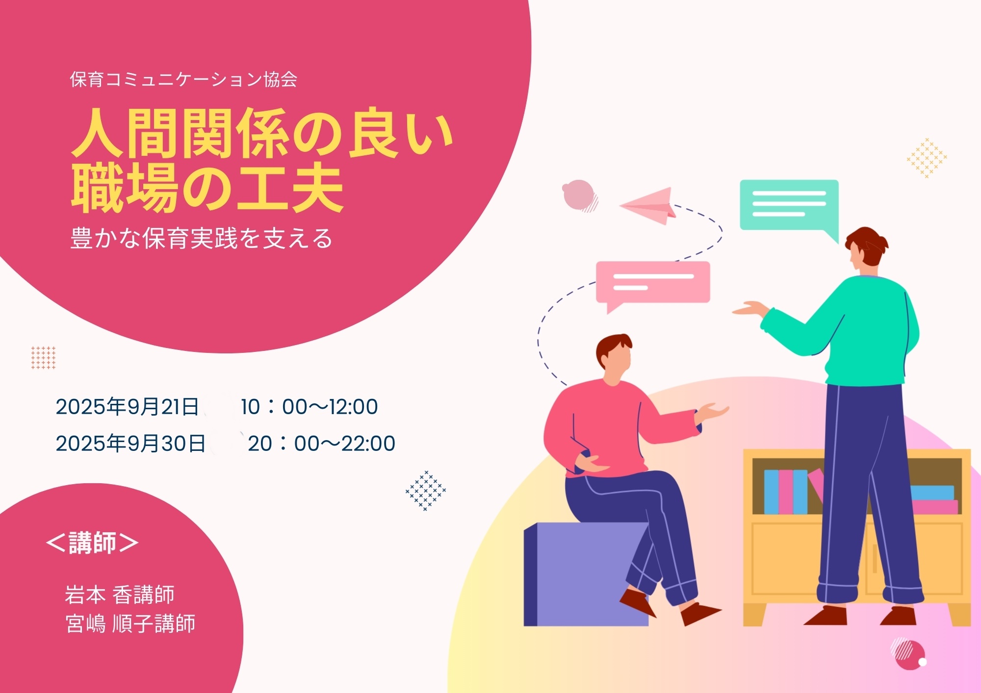 9月開催 豊かな保育実践を支える、職場の関係性とコミュニケーションの秘密【人間関係の良い職場の工夫】