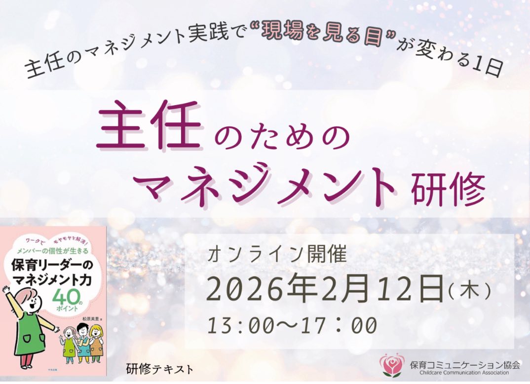 現在主任をされている方はもちろん、4月から主任になる方、実質的に主任の役割を担っている方にも。より動きやすくなるヒントを持ち帰っていただけたらと思います。