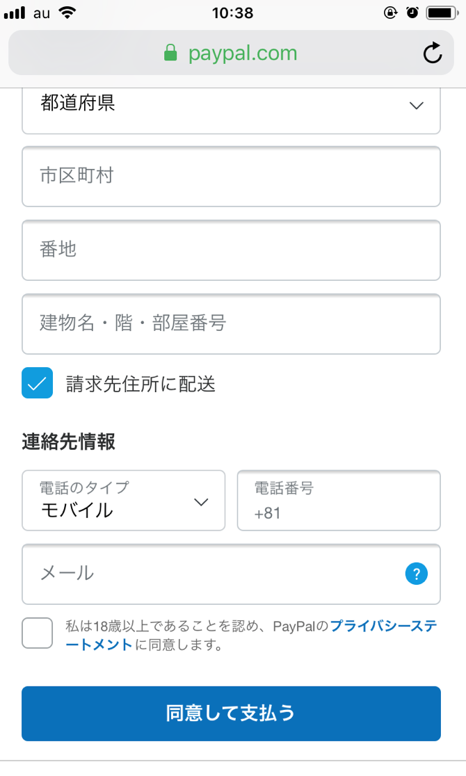 ⑤必要事項を埋めたら、ページ下部にある青い「同意して支払う」をクリックして終了です