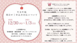 - 1 2026年1月20日(火)開催 2025年版「子どもの権利を尊重する保育へ~不適切保育未然防止研修」